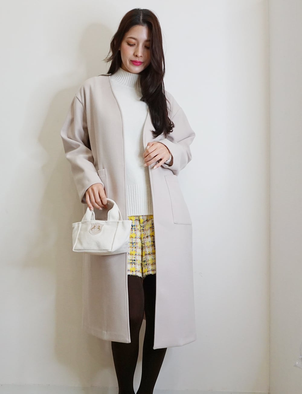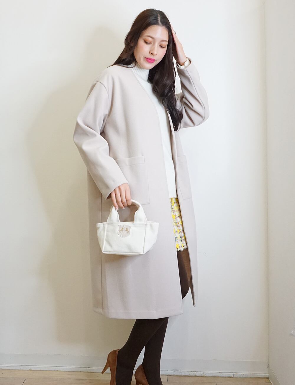 ウールタッチな生地で滑らか手触りが良く、軽い着心地が魅力。