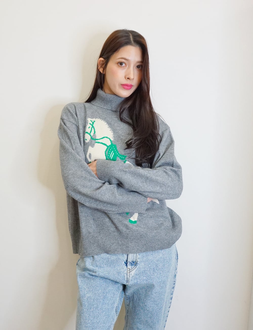 white horseニット gray