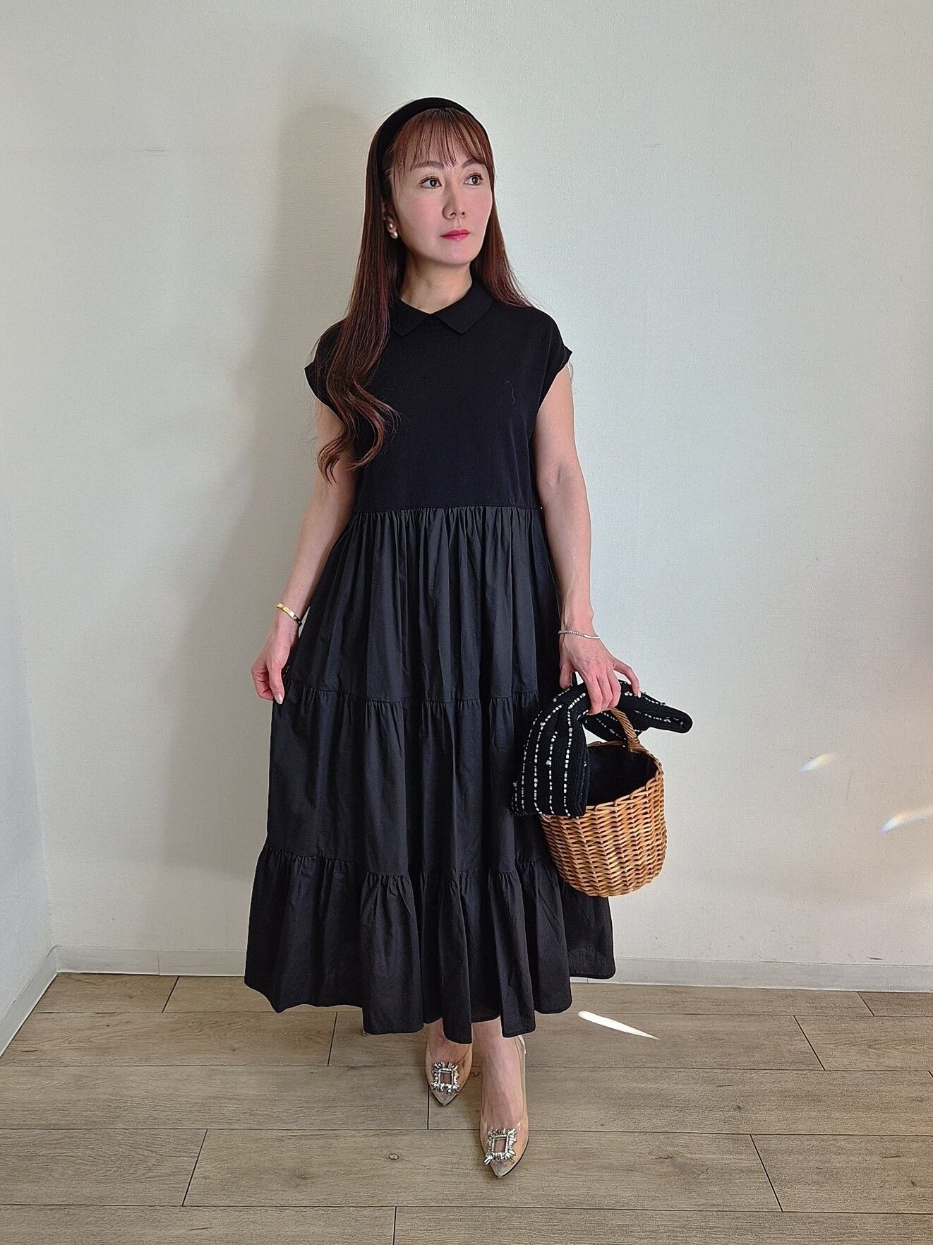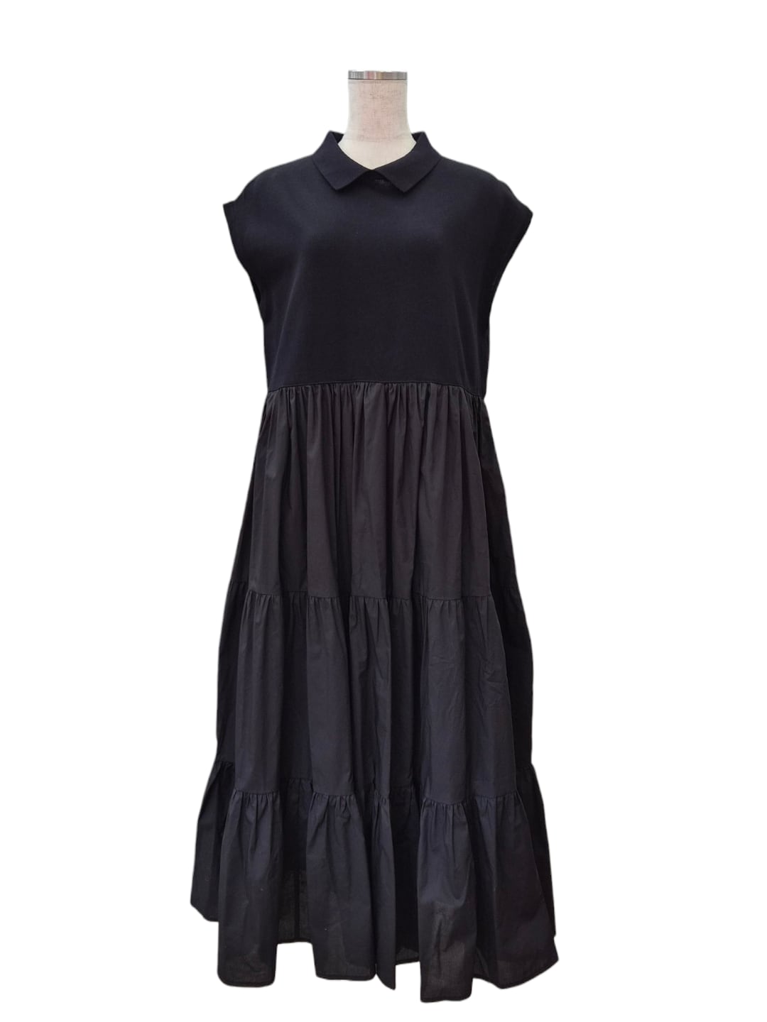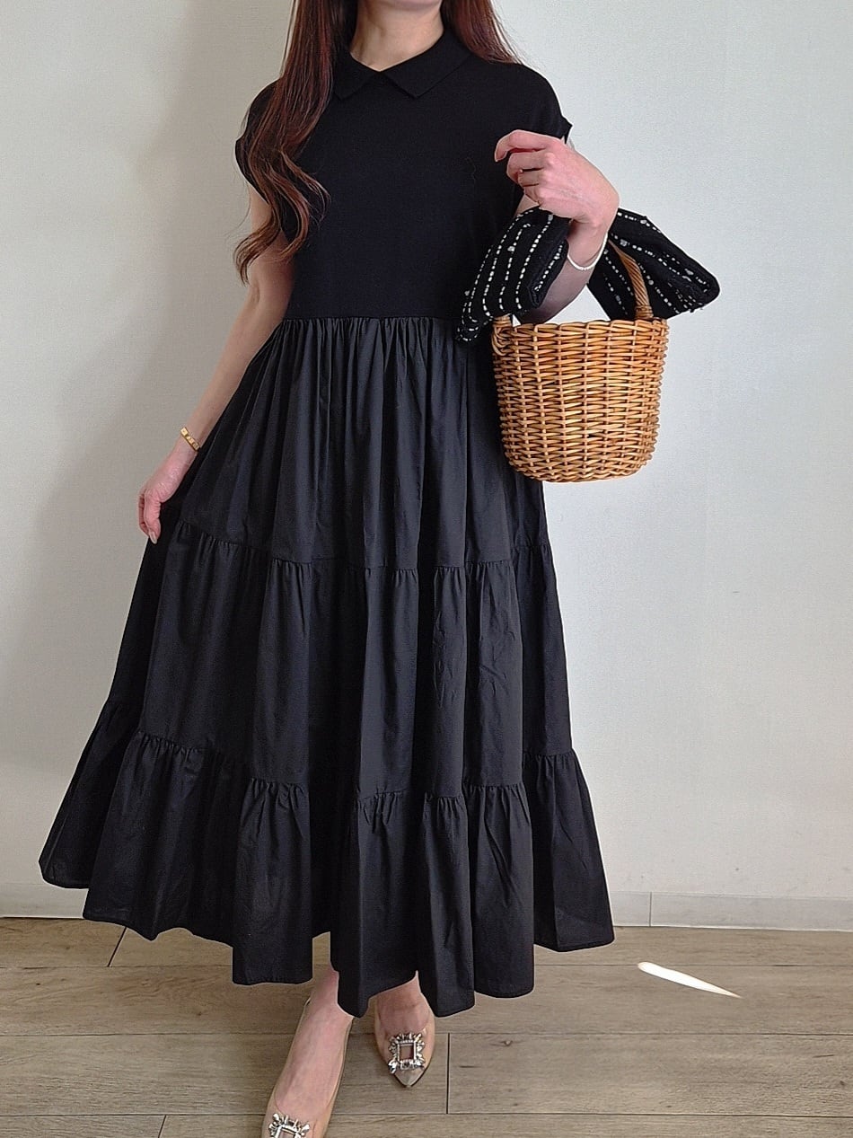 カラードッキングティアードワンピース black