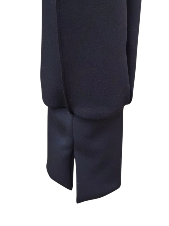 テンションがありながら、軽量でシワになりにくく、従来の中肉素材では表現しにくいストレッチ感と膨らみを追求した素材を使用しています。