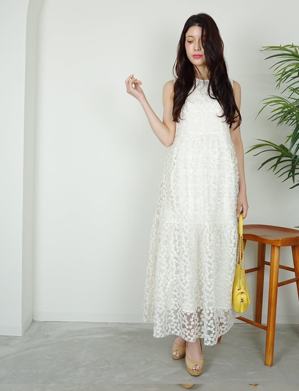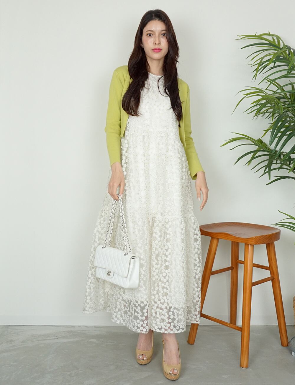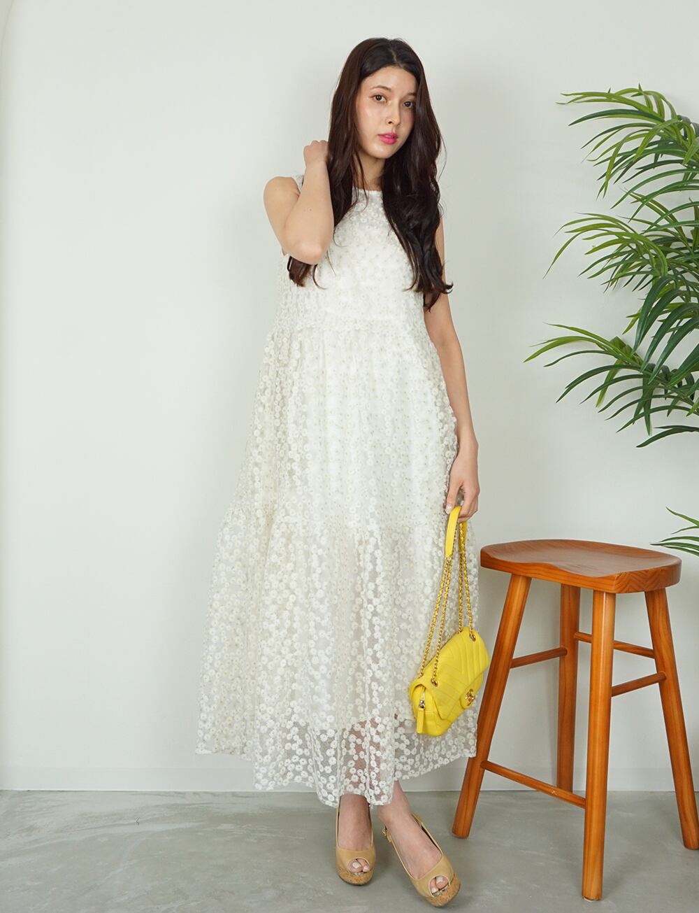 フラワー刺繍オーガンジーワンピース white