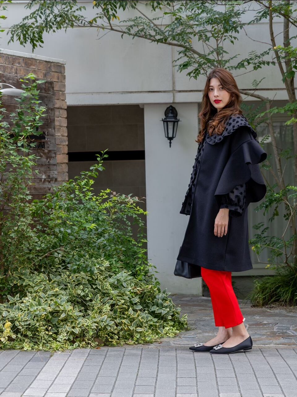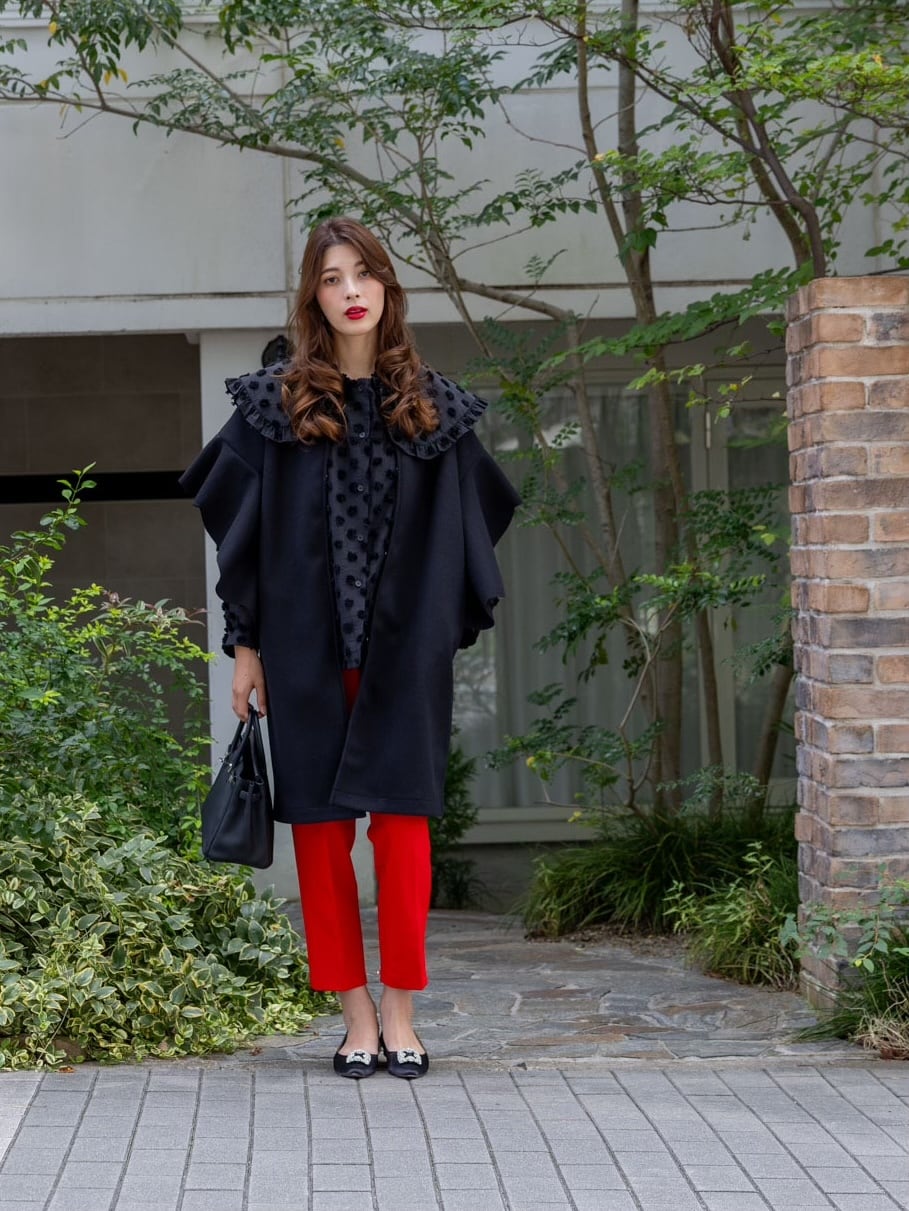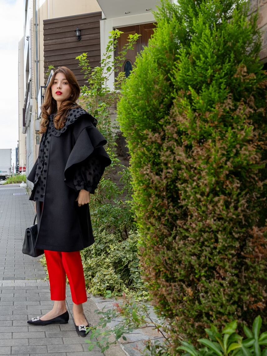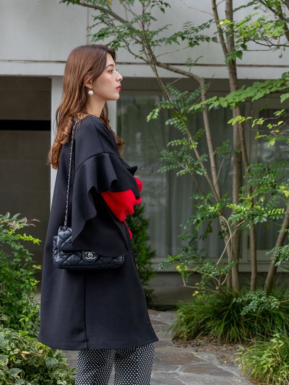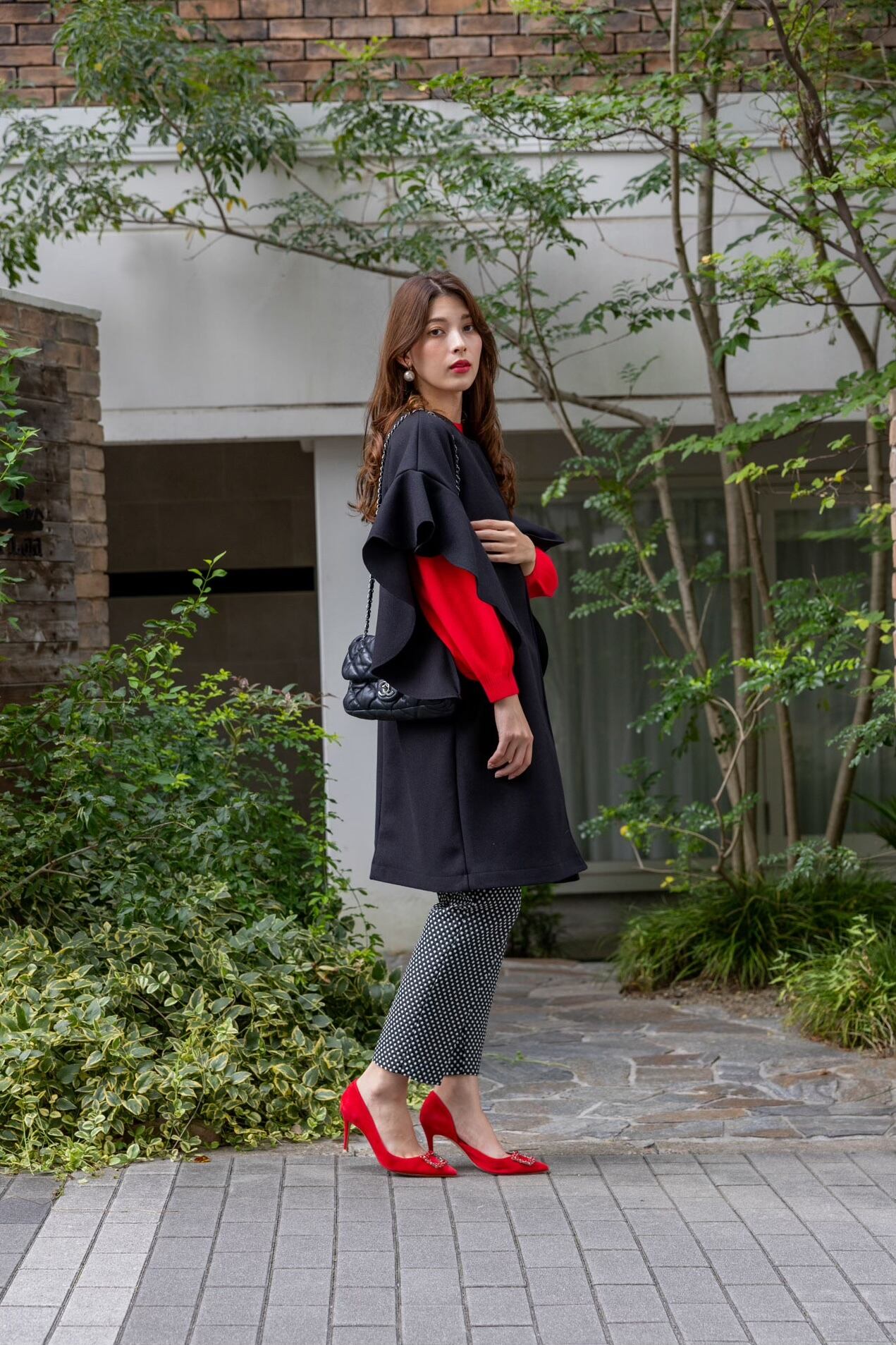 スカラップカットを施した立体的な袖がデザインのポイントに。